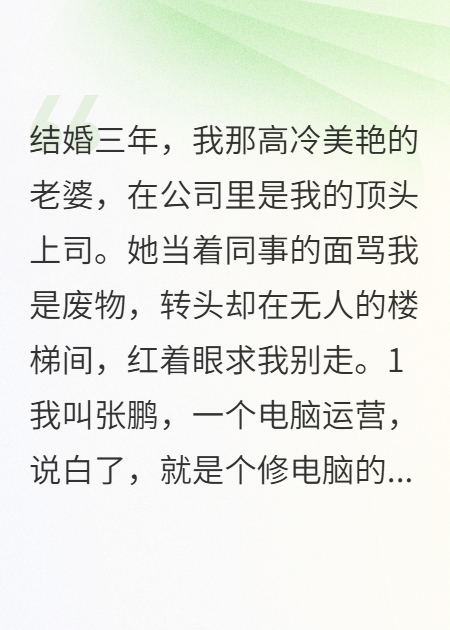北风飘逸-著 查看小说《完蛋:八年重逢,初恋变成女暴龙》的主角是【江浔苏郁江哲】,这是一本都市日常,都市,大小姐,搞笑轻松小说,由才华横溢的“公子勋”创作,故事情节生动有趣。本站无广告,欢迎阅读!本书共计171821字,149章节,更新日期为2025-11-15。该作品目前在本网 【sosoxx.com】上连载中。小说详情介绍:前期微虐+逗逼+日常+轻松+双洁+双向奔赴提醒:接受不了前面微虐的,请慎重进入,手下留情。八年前:’苏郁,我们一定要考上同一所大学,江浔一脸认真的看着她,“江浔,我们会一直走下去的....。”苏母轻蔑的看着江浔:这是五百万,小数点后四位的零,你这辈子见过吗?」「签了它,从我女儿的世界消失。别装清高——你们租的老破小,房租还是我女儿在垫吧?江浔看着眼前这中年美妇,瞥了眼那张支票,淡淡一笑,“阿姨,一顿饱,和顿顿饱我还是分得清的。”既然拉不长你,也得气你三分。苏母怒目而视:“你,年轻人,劝你适可而止。给你看个东西......。”江浔扫了眼苏母手中的视频,银牙紧咬,拿起那一张带着一串数字支票,一撕,转身离去。第二天,江浔消失了,八年后:江浔回到江城,帮八岁的弟弟开家长会。看到弟弟班主任的刹那,彼此都惊呆了......。苏郁办公室:苏郁猛地伸出双手,连衣带肉拽住江浔胸前的衬衫,发疯似的摇晃着他,“你难道就没话想对我说吗?”“喔.......,”江浔怪叫一声,“你说话啊...,”“你耍流氓啊,玩袭胸!”这初恋怎么变成女暴龙了?..............(简介无力,移步正文)