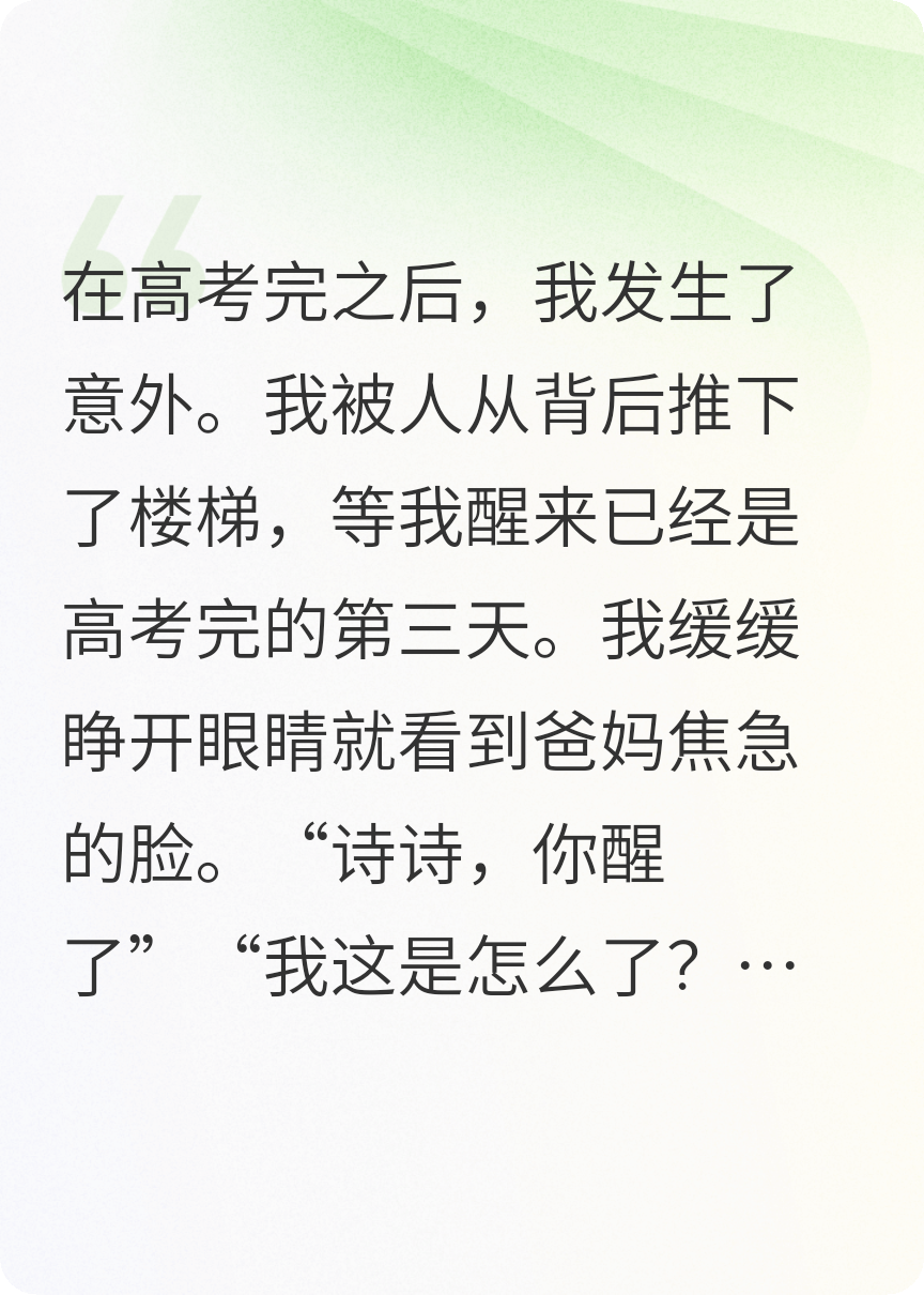 甜真人-著 查看上一世顾建军留我在乡下照顾他的寡嫂柳青青母子和婆婆,还为了带她母子随军和婆婆设计做局让我留下,我被婆婆抓到从二流子床上起来,以为去找顾建军能相信我还我清白结果才发现顾建军和柳青青在军区已经成双入对,而且柳青青还拿着我的大学录取通知书顶替我上了大学,两人还有了孩子,我去找顾建军领导讨说法,却被顾建军和柳青青的结婚证打脸说我只是投奔他们的表妹,是我得了癔症痴缠顾建军,最后以我精神不正常为由送到精神病院,抑郁而终的我飘在顾建军和柳青青身边,看到顾建军把我送他的祖传玉佩给了柳青青,柳青青靠着玉佩的滋养越来越年轻漂亮还进了部队文工团。重生回到录取通知书刚到的那天,我解锁玉佩空间藏起录取通知书,开始复仇和顾建军解绑!