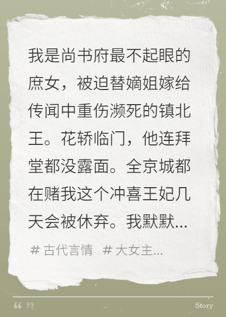 [11-14 14:56] (姜桐顾淮枫苏浅浅)折一枝别春旧梦姜桐顾淮枫小说彩蛋畅享极简全部章节列表 主角为【姜桐顾淮枫苏浅浅】的精品短篇小说《折一枝别春旧梦姜桐顾淮枫小说彩蛋》,由作家“阿祖”倾心创作,情节充满惊喜与悬念。本站无广告,欢迎阅读!本书共计28901字,22章节,更新日期为2025-11-14。该作品目前在本网 【sosoxx.com】上完结。小说详情介绍:婚后第五年,姜桐为自己定制了一口棺材。深红色的梨花木棺送进顾宅后厅,她被佣人搀扶着爬进去。“王妈,盖棺吧。”她指尖抚过棺内壁的木纹,盯着头顶的光亮,直到最后一丝也不见。这潦草不堪的一生在眼前缓缓浮现。十年前,福利院倒闭,她流落在街头捡垃圾为生时,被亲生父母找回。母亲给的糖果还未塞进嘴里,人已经推进手术室,为她从小金尊玉贵捧在手心长大的妹妹换肾。出院第一天,大师说她八字冲撞妹妹,她刀口还未拆线便被父母安排住进地下室避凶。